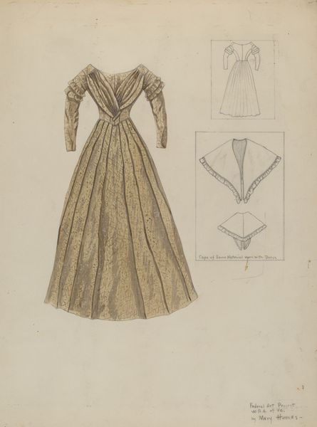 Ray Price made this drawing of a coat suit, but we don't know exactly when. It's rendered with coloured pencil on paper. What strikes me is the way the colour softly models the form, giving depth with subtle tonal variations. It's all about the process of gradual build-up, layer upon layer. You can see how the weave of the fabric is suggested by the short broken marks of the pencil, especially on the longer skirt. The texture feels almost velvety, beckoning to be touched. But it's the drawing’s precision in the detail – the buttons, the pleats, the way the collar turns – which really gives this garment its air of sophistication. See how the light seems to catch the edges, making it almost glow? Thinking about other artists, it makes me think a little bit of Agnes Martin's drawings, but maybe a bit warmer. In the end, it's about seeing how an artist can create a whole world with simple marks and a limited palette. It's an ongoing conversation, isn't it?