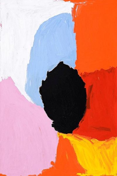 Curator: Sally Gabori’s 2008 canvas, "Dibirdibi Country," really leaps off the wall, doesn't it? Editor: Absolutely, the chromatic intensity is almost jarring! What I find most striking is the composition—these fields of pure colour colliding. It reminds me a bit of Rothko, but with a decidedly different feel. Curator: Gabori was working with acrylic on canvas here, a very accessible and contemporary medium. The significance for me lies in Gabori's cultural background, and how that shapes her artistic labor. As a Kaiadilt woman from Bentinck Island, her paintings represent her ancestral land, her connection to place. It's about reclaiming and asserting indigenous presence and self-representation, right? Editor: True, and the formal qualities lend themselves well to this representation. Note how the stark delineation emphasizes each chromatic area, thereby mirroring the boundaries within her cultural inheritance. The interplay among white, red, blue, black, orange, and violet—the overall structure of the painting is self-referential to painting, rather than culture? Curator: That's an interesting proposition, however, the 'rawness' of these colours evokes a primal landscape of home and country to me, a deliberate mark making—an artistic output directly born out of Gabori's labor of love to communicate stories to later generations. Editor: I can see how that translates to a deeply personal symbolism for the artist, yes. These large planes have an impact of being both immediate and immense. Thank you for clarifying that background; I think it alters the piece in quite meaningful and interesting ways. Curator: Glad to shed some light. For me, understanding that link to the artist's material and social conditions, elevates the emotional resonance profoundly. Editor: It’s certainly true. Understanding form is the start but not necessarily the finish to understanding meaning. Thank you for sharing your perspective!