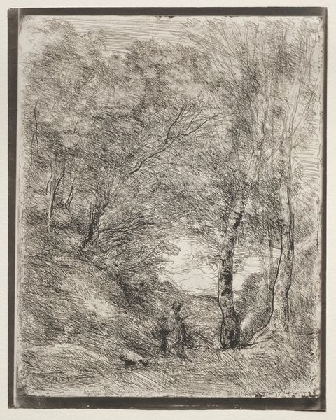 Marc Chagall made this etching, The Lion and the Ass, whenever, using who knows what kind of metal plate and acid. The way he's built up these areas of dense, scribbly lines, it's like he's thinking with the tool itself, letting the marks pile up and create these almost vibrating surfaces. Look closely at the trees, how they're not just outlines but masses of tiny, energetic strokes. It's almost as if he's not depicting trees but conjuring them, building them up from the ground with pure energy. And then, notice the open spaces, the areas where the plate is barely touched. These bits of nothingness become just as important as the dense parts, giving the whole image a sense of lightness, like it could all float away at any moment. I see echoes of Rembrandt in the way Chagall uses light and shadow, but with a distinctly modern, dreamlike twist. Art is always in conversation with itself, a remix of ideas and approaches across time.