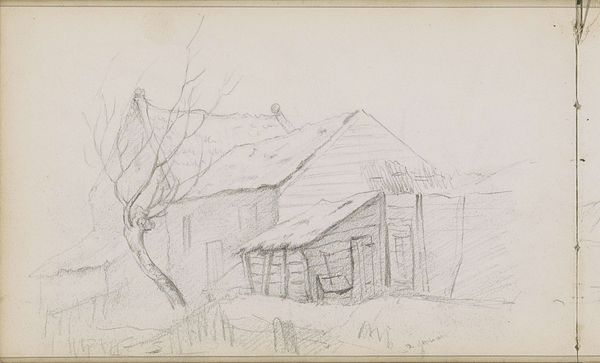 Editor: Here we have John Singer Sargent's pencil drawing, Chalet. The modest scale and the way the pencil strokes capture light and shadow are striking. What can you tell me about this piece? Curator: It’s interesting to consider Sargent's choice of pencil, a readily available and relatively inexpensive material. How does this inform our understanding of his artistic practice and the context in which this work was produced? Editor: So, the medium itself speaks to a certain accessibility, maybe even a democratizing impulse? Curator: Precisely. Consider the implications of mass-produced materials on artistic creation. It prompts us to think about the labor involved and the social strata represented. A lot to think about! Editor: Definitely gives me a new appreciation for Sargent's process. Thanks!