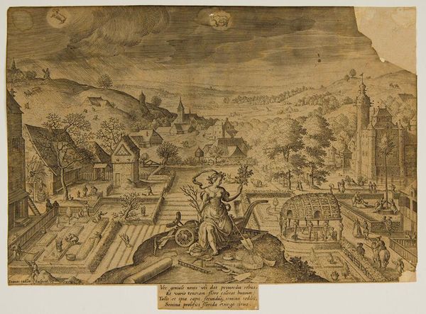 Curator: This is Adriaen Collaert's "Maria Magdalena," held here at the Harvard Art Museums. It’s a scene teeming with intricate detail, almost like a stage set. What strikes you first? Editor: The solitude, paradoxically. While the landscape teems with life, Maria's isolation feels palpable. There’s this tension between the lush world and her renunciation of it. Curator: Precisely. Look at the contrast between the detailed town and the raw, natural elements. It speaks to the transformation she is undergoing. The angels in the hut suggest something otherworldly. Editor: Yes, and the city could signify societal constraints, while the wilderness represents liberation from patriarchal structures. The image uses nature as a site for female contemplation. Curator: It's a world of inner reflection, visualized. Seeing her, I'm reminded that the soul, like a garden, needs both cultivation and wild spaces. Editor: Absolutely. Collaert seems to ask: Can transformation only occur when we step outside the boundaries of the familiar?
