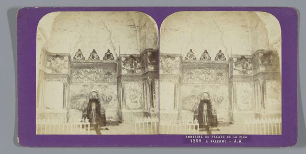 Editor: This is Jean Andrieu’s photograph, “Patio de las Doncellas in het Alcazar in Sevilla,” dating from somewhere between 1862 and 1876. It’s an albumen print, which gives it this wonderfully warm, almost sepia tone. What strikes me most is the meticulous detail and how it showcases the architecture. What do you see in this piece? Curator: I see a potent intersection of technology, labor, and colonial context. The albumen print process itself is key here. It required skilled labor, involving coating paper with egg whites and silver nitrate – materials and processes of considerable cost. And the Alcázar, a stunning example of Mudéjar architecture, speaks volumes about power, conquest, and the overlaying of cultures, particularly Islamic and Christian. Editor: So, it’s not just a pretty picture of a building, then? Curator: Precisely. This image functions as a commodity. Albumen prints like this were mass-produced and sold as souvenirs. The photographic representation of exotic architecture becomes part of the colonial project – collecting, classifying, and ultimately, controlling these cultures through visual means. Consider the laborers involved in constructing the Alcázar, and those in Andrieu's studio... whose stories aren't being told in this print? Editor: That’s fascinating. I hadn't thought about the process that way, almost as a form of… appropriation? Curator: You've got it. And beyond the obvious colonial power dynamic represented, consider that photography itself, with its chemicals and paper, contributed to the industrial economy. Editor: I never thought about that aspect of it before. Curator: Photography's creation depended on systems of labour that extend beyond Andrieu or the visible architecture. Each one part of this intricate socio-economic network that is deeply intertwined with our experience and understanding of art. Editor: That’s given me a completely different perspective. Curator: Good, it’s important to see the full spectrum of meaning and cultural context through artistic practice, moving beyond purely aesthetic appreciation.