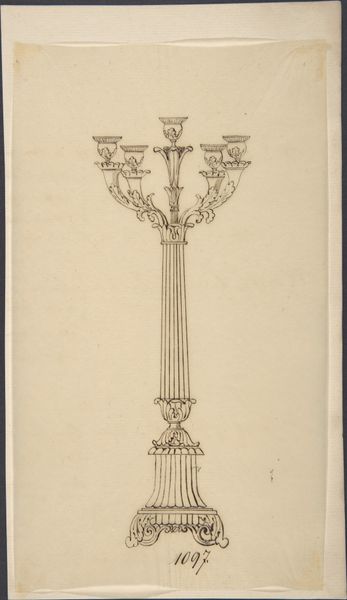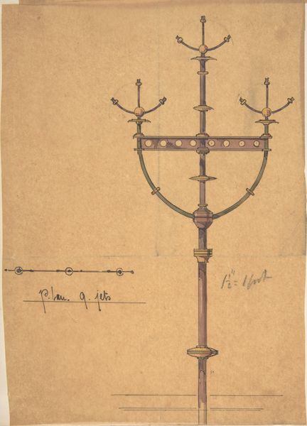 Curator: This small yet captivating drawing in ink on paper is titled "Turmkreuz der Frauenkirche in Nürnberg." Attributed to Karl Ballenberger, it captures a tower cross from the Frauenkirche, or Church of Our Lady, in Nuremberg. Editor: It's striking! Stark in its simplicity. The cross, rendered in such a direct, almost skeletal fashion, gives me a feeling of resilience, as if witnessing a survivor. Curator: Indeed. Frauenkirche carries a significant historical weight. Built in the 14th century on the former site of a synagogue, it served as the Imperial Chapel. Consider how Ballenberger chose to depict only the cross, almost detached. Editor: That erasure, the very conscious decontextualization, is powerful. By focusing solely on the cross, elevated and isolated with the addition of a cock, it feels like a potent symbol ripped from the complicated tapestry of religious and political history that Frauenkirche embodies. The synagogue's violent history, layered with its Christian appropriation, isn’t directly represented. Curator: The sketch’s style evokes the tradition of medieval manuscripts and architectural drawings. Its lines emphasize the enduring power and visual vocabulary of the cross as a symbol within Nuremberg. The artist is showcasing, and to a degree honoring, a historic religious emblem. Editor: But who is it for? Even simple line drawings reproduce power. What do you think the artistic choice to show architectural fragments tells about the larger narratives this piece engages with? Does it reinforce the Church’s cultural power, or subtly critique it by isolating a symbol often implicated in complex, violent legacies? Curator: The choice may simply reflect Ballenberger’s artistic focus on architectural details within the city's landscape. Consider the drawing in the broader context of architectural studies; perhaps it's part of a collection intended to document or preserve aspects of local history. Editor: And even that act of documentation becomes an assertion of what is considered valuable or worthy of preservation. Looking at "Turmkreuz," it challenges us to critically examine not just the physical artwork itself, but also the historical forces and power structures it represents, sometimes silently. I leave here appreciating how something seemingly simple can become such a conduit for reflecting on historical weight.