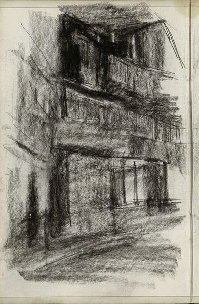 Curator: This Eugène Cicéri drawing, made with pencil on paper, is a design for a stage set at the Opéra in Paris, placing it somewhere between 1830 and 1890. Editor: Well, if I were designing the sets, this image feels a bit like a gloomy Thursday. It has this closed-in, secretive vibe from those shadowed doorways. Kind of like a building holding its breath. Curator: Shadowing definitely creates that feeling, yes. Consider the material limitations too, the reliance on pencil sketches. A stage designer would be making blueprints and sketches to then coordinate with other scenic painters and even carpenters for the construction of the actual set pieces, demonstrating the labor divisions involved. Editor: Absolutely. And thinking of that construction…it makes me wonder what sort of grand tale would unfold in front of those stern doors. What drama would be suitable for that architecture. Some clandestine rendezvous, maybe? Curator: Maybe so, that certainly fits into romantic notions associated with operatic productions. I also appreciate Cicéri’s precise observation in the architectural details but more than anything it evokes the industry of Parisian theatrical production during the period. You can almost feel the dust in the theatre based on the color choices, right? Editor: Totally get that dusty, sepia feeling. It's subtle, you know? Not bombastic opera at all, despite being created for it! Almost feels like Cicéri stumbled upon a quiet Parisian alley and decided that *this* would make for great drama! Curator: And so the materiality informs the mood, despite his choice. From Cicéri’s Romantic-era perspective to our own. Interesting. Editor: Yeah, a quiet, beautiful collision of making-of with emotional landscape... Nice moment there!