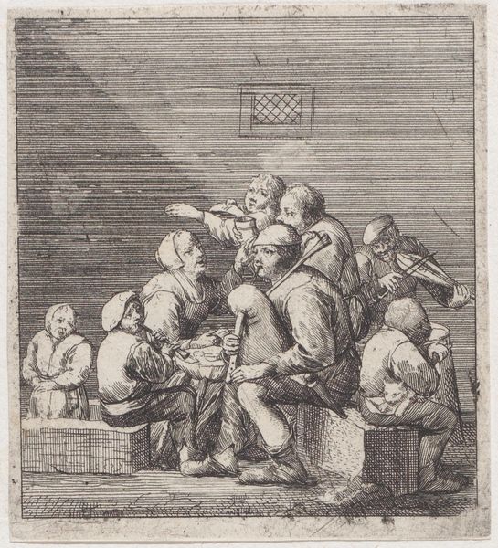 Christina Chalon captured this scene of a family teaching a child to walk with etching. The act of learning to walk is laden with symbolism—it represents independence, growth, and the first steps on life’s journey. Observe how the parents flank the child, offering support and encouragement. This arrangement echoes depictions of guidance found in religious art, such as the Virgin Mary supporting the Christ Child. We see this motif echoed through different eras. Consider the ancient Roman depictions of familial support. Here, in Chalon's etching, the gesture is humanized, brought into the domestic sphere. The child's tentative stance and the parents' watchful eyes evoke a powerful emotional response, tapping into our own memories of vulnerability and growth. This image is not merely a record of a mundane activity but an embodiment of shared human experience—the universal journey from dependence to independence. It is a cycle that repeats, each generation guiding the next.