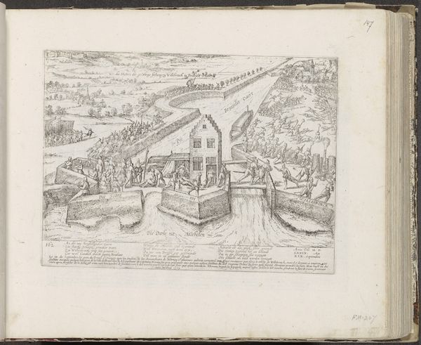 Frans Hogenberg created this engraving, "Duitse troepen verlaten Antwerpen, 1577," to depict German troops leaving Antwerp. The artwork reflects a tumultuous period in European history marked by religious conflict and political upheaval. Hogenberg’s image shows a key moment in the Eighty Years' War, highlighting the tensions between the Dutch and the Spanish rulers. This was a time when identities were deeply intertwined with religious and political affiliations. The soldiers, who were likely mercenaries, played a pivotal role in these conflicts, often caught between loyalties and economic needs. The print captures the unease and instability felt by the citizens of Antwerp, a major port city, during the departure of these forces. This print serves as a reminder of how war and political strife deeply affect personal lives and community stability. It invites us to reflect on the experiences of ordinary people caught in the crossfire.