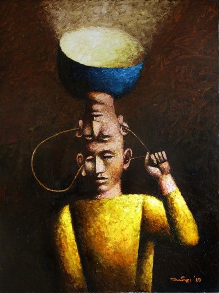 Editor: Looking at "All-in" by Konstantin Korobov, I'm immediately struck by its somewhat sinister air. The subject’s dark gaze and the overall shadowy composition are compelling. It's oil paint, of course. The cards he’s holding and the lit cigar give it almost a genre painting feel, yet there's something unsettling, even surreal. What do you make of it? Curator: It is interesting how the artist combines realism with a surreal undertone. For me, it immediately brings to mind the broader social history of gambling, and how it’s been portrayed in art as a reflection of societal anxieties around risk, morality, and the allure of wealth. Considering the era where depictions of cardsharps and gamblers became popular, one wonders about this work’s commentary. The artist may be referencing these historical depictions while offering a contemporary critique of modern-day obsessions. What symbols draw your attention? Editor: Definitely the cards and the Joker staring out at us. It’s hard not to see the Joker as representing chance, chaos, and perhaps even a critique of societal order, if you place him against that rich background. Curator: Exactly! Considering the prominent Joker and the "vanitas" theme tag, could this be read as a commentary on the fleeting nature of life and fortune? And who is included and excluded in enjoying that fortune? The performance of wealth itself comes to mind. Editor: I never thought about vanitas in the context of socio-economics. Curator: These symbolic images often tap into very specific societal anxieties and function as moral allegories within specific cultural and economic circumstances. Art serves a vital role in that kind of documentation and analysis. Editor: Thanks, I am understanding the complexity of the themes presented in the painting a lot better now.