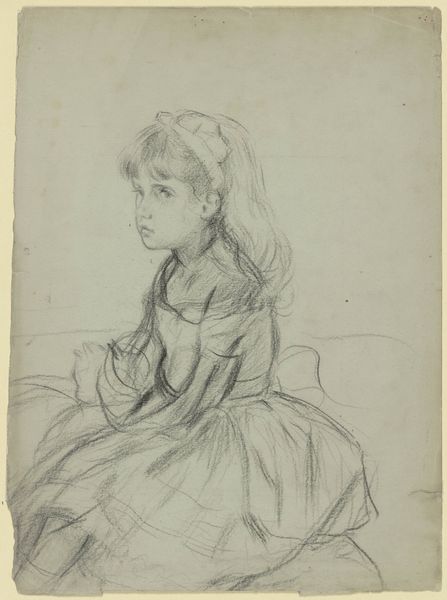 Julius Hamel made this pencil drawing, “Sitting Girl,” sometime in the 19th century. The drawing gives us a glimpse into the artist's world and the lives of women during that period. There’s a sense of quiet contemplation in this image. The young woman’s posture, with her head resting on her hand, suggests a moment of introspection. It invites us to consider the interior lives of women in a time when their roles were often narrowly defined by societal expectations. Hamel, by capturing this moment, acknowledges a depth beyond the surface, hinting at the complexities of female identity. The delicate lines and soft shading enhance the emotional vulnerability of the figure. It’s as if Hamel is inviting us to empathize with the sitter, prompting us to reflect on our own moments of quiet reflection and how they shape our understanding of ourselves and the world around us.