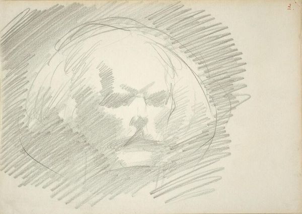 Julie de Graag drew "Head of a Man with Closed Eyes" with pen in the early 20th century. De Graag was working in the Netherlands during a time of great social change, including shifting ideas about gender roles and women's rights, a context that certainly shaped her artistic perspective. The sketch is simple and raw; the man's face is serene, perhaps lost in thought or dreaming. The use of closed eyes is interesting, as it removes the possibility of direct engagement, inviting introspection. The lines around the head suggest a kind of chaotic energy, contrasting with the calm of the face. As a woman artist, De Graag had to navigate a traditionally male-dominated art world. Her choice to depict a male subject in such an intimate, vulnerable state might be a subtle commentary on the conventional, often heroic, portrayals of men in art. The sketch evokes empathy, blurring the lines of traditional representation. The artwork encourages us to reflect on the quiet moments of human experience and the subtle ways artists challenge societal norms.