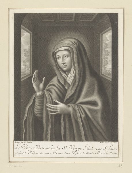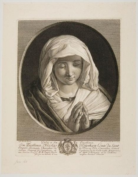 Editor: This is "Maria," an engraving by François Spierre, created sometime between 1649 and 1681. It has this delicate, almost ethereal quality about it, very light. What’s your take on this piece? Curator: What strikes me is the labour embedded within. Engraving, particularly during the Baroque, wasn't just about artistic expression; it was a crucial form of reproduction, disseminating images across vast distances. We need to consider who controlled those means of production, who profited from its circulation. Think of the print workshops – the skilled artisans, often anonymous, who translated an image into something reproducible. What socioeconomic context might have produced this engraving? Editor: I hadn’t thought about it like that, more about the artistry itself. The lines are so precise! Curator: Precisely! The line is not merely aesthetic here. It’s the result of skilled labor, of repetitive action. Each line etched contributes to the final image, each groove dug with deliberate intent. The materials also speak volumes. Copper, ink, paper, all playing into an act of labour. Does considering it in that context alter the image for you? Editor: It does. Knowing it's not just inspiration but a physical, laborious process changes things. Are you saying that how something is made is as significant as what is depicted? Curator: Exactly. Consider the distribution of this image. Where would prints like this have ended up? In the hands of the wealthy? Religious institutions? Dissecting the networks of consumption opens another layer to the work. It stops being solely about religious sentiment. Editor: I’m starting to appreciate how much more there is than initially meets the eye. Thank you for your perspective! Curator: My pleasure. Analyzing an artwork through production and material considerations offers an interesting insight, doesn't it? It takes us beyond just admiring its face value.