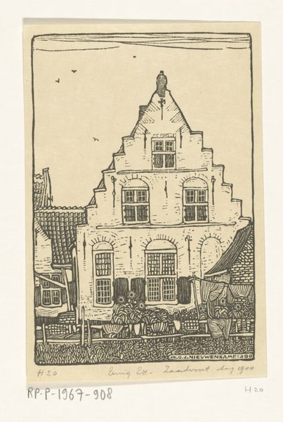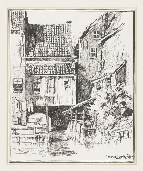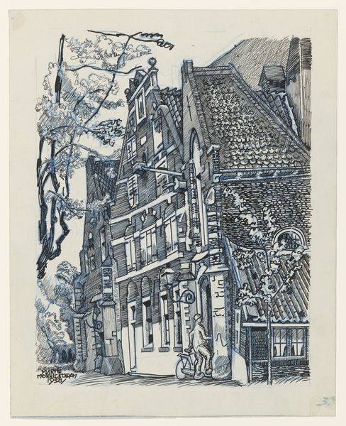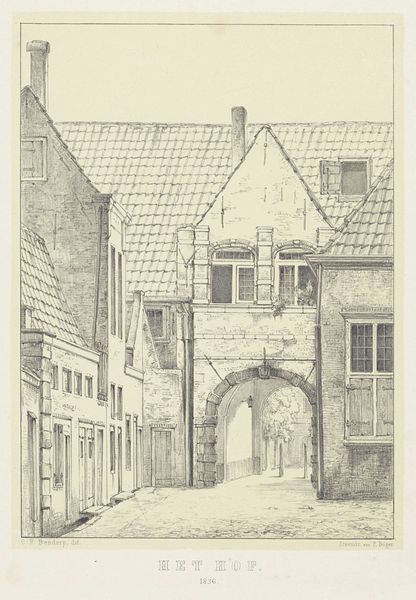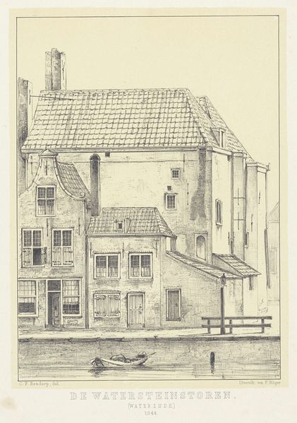Curator: I find something deeply nostalgic in this cityscape. There’s a stillness to it, almost a reverence for the past. Editor: Indeed. This is "Groothoofd in Dordrecht," a pencil drawing completed in 1872 by Carel Frederik Bendorp. The subject is the Groothoofd, a historic landmark in the city of Dordrecht in the Netherlands, marking the meeting point of three rivers. Curator: That location must hold layers of meaning for the community, standing at such a confluence. Look at the meticulous rendering of the brickwork and roof tiles; there's a textural reality that hints at the enduring nature of these structures, even as life flows around them. What do you know about how Dordrecht figures in the cultural memory of the Netherlands? Editor: Dordrecht was historically significant, being the oldest city in Holland and playing a pivotal role in Dutch history, including the first assembly of the States General. Bendorp is capturing not just a place, but a symbol of Dutch identity and heritage during a time of rapid industrialization and social change. Curator: It’s a portrait, then, of national identity at a crucial point in time, relying on very familiar symbols. Note how the drawing emphasizes the height and solid, blocky nature of the architecture; these shapes represent resilience and continuity. I'm particularly drawn to the barely visible "ANN" sign painted onto one of the buildings...it suggests an emotional anchor for the individuals living and working there, alluding to something deeply personal, maybe even familial. Editor: Absolutely. Bendorp's artistic decisions clearly emphasize Dordrecht's importance, highlighting recognizable and enduring landmarks. Art patronage and collecting rose alongside national sentiments during this period. Representations like these fueled public awareness and cultural pride in the face of modern progress and external competition. These artworks become both documents and symbols of their eras. Curator: The subtle tonality achieved with pencil imbues the scene with an ethereal quality; time feels suspended. You're right, this cityscape is so much more than a topographical record; it whispers stories of time and cultural change, inviting viewers to ponder their own relationship to heritage and identity. Editor: A poignant encapsulation of history through architecture; Bendorp provides a glimpse into both the physicality of the landmark itself, and its vital place in the national consciousness.