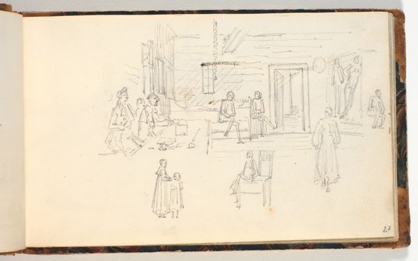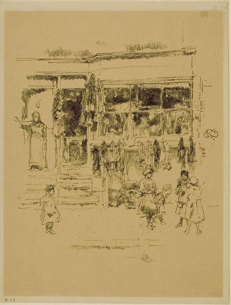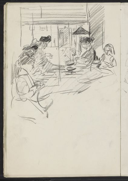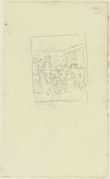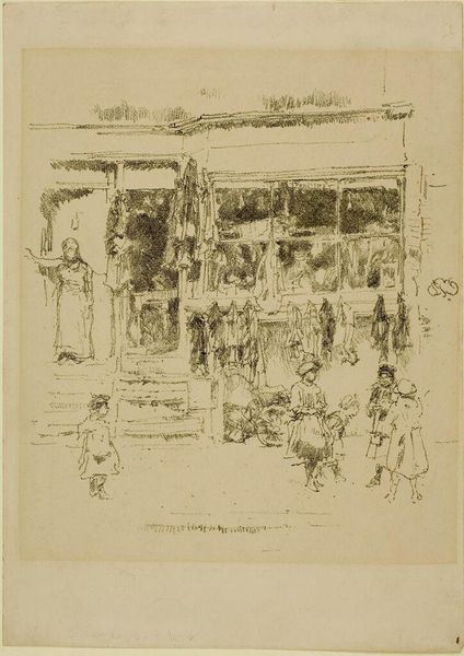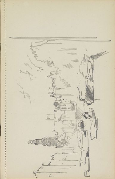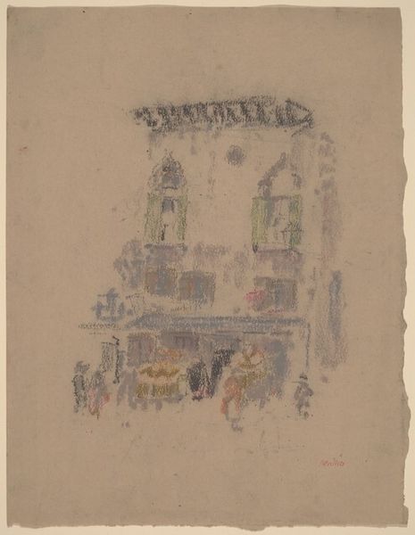 Curator: Alright, let’s dive into James Abbott McNeill Whistler's 1893 pencil drawing, "The Market-Place, Vitré," currently held at the Rijksmuseum. What are your first impressions? Editor: It feels…dreamy. Like a memory half-faded. The lack of harsh lines really softens the hustle and bustle you’d expect from a market. Almost like peeking into the past, don't you think? Curator: Absolutely. And it’s worth noting that Whistler's process here really exemplifies Impressionist principles, focusing less on accurate detail and more on capturing the fleeting impression of the scene. Notice how he uses line to evoke form without precisely defining it. Editor: The "fleeting impression"—perfectly put. It makes me wonder about the lives of those figures bustling around. Are they aware they're participating in the creation of a moment, destined to fade into this kind of artistic abstraction? Makes you feel ephemeral yourself. Curator: In examining Whistler's drawing, it’s fascinating to observe how he flattens the picture plane, somewhat disrupting conventional perspective. This directs the eye more towards the patterns and rhythms of everyday life, emphasizing form over narrative. Editor: See, I get completely lost in that lack of crispness. Like trying to grasp a half-remembered melody, I am searching for definition amidst the softness, constructing my own meaning between the lines... It’s a very engaging push and pull. Curator: Whistler consistently engaged with themes of form, cityscape, and figuration. Beyond capturing just a snapshot of 19th-century France, he explores the broader socio-economic fabric that formed everyday urban experience. Consider how the placement of stalls reflects societal organization and transactional activities. Editor: Okay, Materialist, now you are analyzing it! While you are dissecting the socio-economic implications of produce placement, I'm enjoying the moodiness he conjures with simple pencil strokes. Almost melancholic, even. Curator: A melancholic market—an interesting reading! This all ties in with how artistic techniques in drawings like this one both reflect and reinforce certain viewpoints. Thanks to that insight, I might have to reconsider my perspective on this piece and return with new readings.