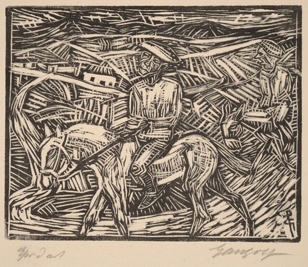 This image of farm equipment was made by Charles R. Brown using etching, a printmaking technique. The artist covered a metal plate with a waxy, acid-resistant coating. They then drew into this coating, exposing the bare metal. The plate was then submerged in acid, which bit into the exposed lines, creating grooves. The plate was inked and wiped, leaving ink only in the etched lines, and finally pressed onto paper. The resulting image is characterized by fine, precise lines that capture the mechanical complexity of the farm equipment. The choice of etching emphasizes the labor and precision involved in both farming and printmaking. The monochrome palette adds to the sense of stark realism. This work invites us to think about the labor-intensive processes behind both artistic creation and agricultural production. It challenges traditional hierarchies by elevating everyday tools to the realm of fine art, prompting a reflection on the value and dignity of work.