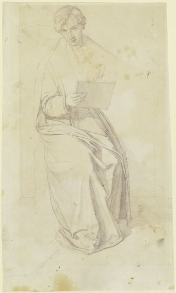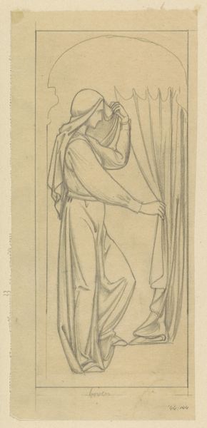 Albert Joseph Moore created this drapery study for "A Venus" with chalk on brown paper. The flowing fabric evokes the classical world, reminiscent of the robes worn by Greek goddesses. The motif of draped fabric carries a rich history. Consider its presence in ancient Roman sculptures, where it signifies status and divinity. We see it again in Renaissance paintings, carefully arranged to convey elegance. The fabric here is not merely cloth, but an embodiment of cultural memory, a thread connecting Moore’s work to centuries of artistic tradition. Drapery also serves as a psychological symbol. It can conceal or reveal, suggest sensuality, and create drama through light and shadow. Just as veils possess complex layers of meaning, the heavy folds are imbued with a certain sense of melancholy. The presence of this symbol in art history reflects a deep, cyclical progression, its forms and meanings continuously resurfacing and evolving across time.