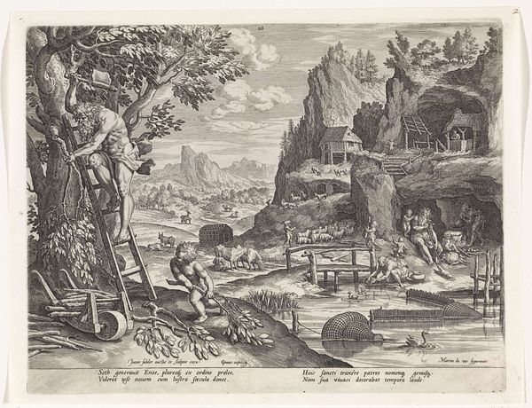 Johannes van Doetecum I created this print of The Penitent Magdalene from The Large Landscapes. The image shows the figure of Mary Magdalene in the bottom right corner, a religious figure known for repentance. This print, made in the Netherlands, reflects the religious and social environment of the 16th century. The detailed landscape with its rolling hills, forests, and distant towns highlights the cultural value placed on the natural world. The inclusion of a religious figure within this landscape invites viewers to contemplate the relationship between humanity, nature, and the divine. Consider how the print uses visual codes, such as the contrast between the wilderness and the distant town, to create meaning. What might this contrast suggest about the social values and beliefs of the time? Researching the history of landscape art and the role of religion in 16th-century Dutch society can provide greater insight into the print's broader cultural and historical context.
