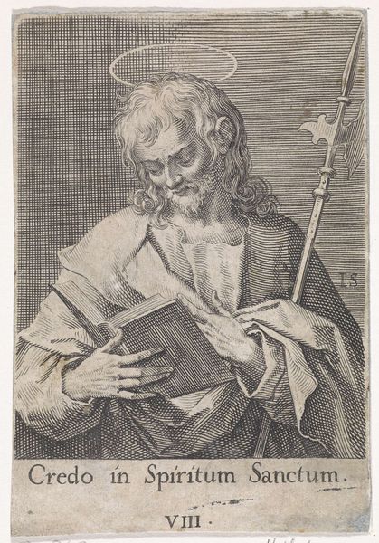 Editor: Here we see Johann Georg Bergmüller's "S. James Minor." I'm struck by the density of lines, creating light and shadow. What compositional elements stand out to you? Curator: Note how the hatching technique articulates the saint's drapery. It is not mere representation but a system of signs. The density of lines creates a visual weight, grounding the figure. Editor: So the lines aren't just descriptive, they're structural? Curator: Precisely. They define form and texture, creating a self-referential system. It invites us to decode the visual language rather than seek external narratives. The figure exists only as a series of carefully placed marks. Editor: I see. It's like the image is less about Saint James and more about the act of image-making itself. Thanks for that insight! Curator: Indeed. It is a testament to the power of the line.