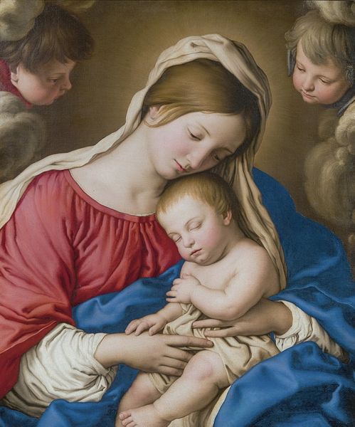 Palma Vecchio made this oil painting of the Holy Family, around 1520, using traditional materials. Looking closely, the smooth, luminous surfaces are due to the slow layering of thin, translucent glazes. This was a common technique in the Renaissance, and required the artist to grind their own pigments and mix them with oil, a labor-intensive process in itself. The materiality of the paint is also important to the way the figures are depicted. The colors are rich and vibrant, and the subtle gradations of light and shadow create a sense of depth and volume. The figures appear idealized, with smooth skin, flowing hair, and elegant drapery. While we appreciate the beauty and skill that went into this picture, it's important to remember the context of its production. The painting would have been commissioned by a wealthy patron. In a sense, it's a testament to the complex relationship between artistic labor, religious devotion, and economic power.