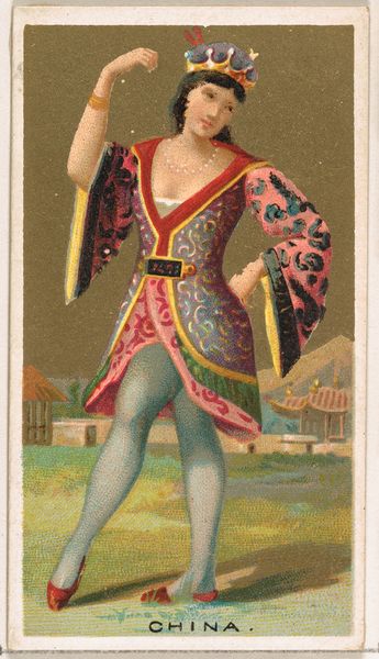 "Roumania" from the Dancing Girls of the World series was made by Wm. S. Kimball & Co. as a lithograph card, and like the rest of the series, it was an insert in cigarette packs. These cards reflect the late 19th-century cultural fascination with the "exotic." They were also tools of commerce, feeding into and creating stereotypes about foreign cultures. What is the relationship between fantasy and reality? This image attempts to capture a sense of Romanian identity, but the artist's gaze inevitably shapes the representation. In the image, the woman's clothing and jewelry denote “Roumania” and signal an “authentic” ethnicity, while her bare chest alludes to the Western male gaze that often exoticizes women of color. This card underscores how representations of women are inextricably linked to historical and social power structures. The image offers us a window into a time of great cultural exchange, but it also makes visible the complex power dynamics inherent in that exchange. It beckons us to consider how cultural narratives are constructed and perpetuated, and it invites us to reflect on how we, as viewers, engage with representations of identity.