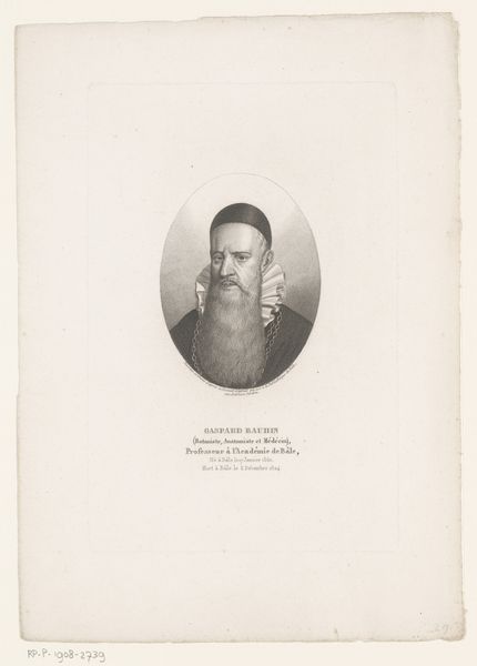 Editor: Here we have a print from around 1850, titled "Portret van Johannes Polyander van Kerckhoven" by Leendert (I) Springer. It’s interesting to see how they rendered a portrait with what looks to be a printmaking technique. How do you approach understanding this work? Curator: As a materialist, I’m particularly interested in the means of its production. It being a print immediately situates it within a broader social context. Consider the implications: who was commissioning such works, and for what purposes? What labor was involved, and how did that affect the final image? Editor: That’s interesting. I hadn’t thought about the labor behind a print. So, the act of printing allows for distribution of images to more than wealthy patrons of the arts? Curator: Exactly. Printmaking facilitated wider dissemination, reaching audiences beyond the elite who could afford original paintings. This brings in issues of standardization and the reproduction of power through image-making. We might want to examine how the specific printmaking technique employed impacts the perceived value and accessibility of the portrait. Is it mass produced or carefully crafted? Editor: So it democratizes the image somewhat but the labour involved can be significant if the artist cares for the craft. It speaks a lot about that period too. Are there any social clues we can glean from the style and apparel that we would otherwise miss? Curator: Absolutely, the sitter's attire and the overall style locate him firmly within a particular social and intellectual milieu. Consider the contrast between his plain garb and the meticulous detail afforded to his features. What does this say about the values prioritised at the time, the artist’s studio and workshops of the period? Editor: Okay, so, by understanding the printmaking process and considering who had access to this kind of image, we can move beyond just seeing a portrait, right? We start to see a whole social and economic world at work. Curator: Precisely. It’s about connecting the dots between materiality, production, and the broader societal forces at play. Material considerations illuminate the larger framework. Editor: Thanks! I will now be more mindful about materiality.