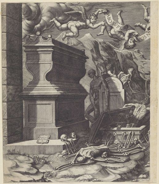 Gabriel de Saint-Aubin's etching, "Regulus Condemned to the Most Horrible Torture" presents a scene teeming with figures and architectural detail. Executed with delicate lines, the monochromatic print balances horror with an almost classical order. The scene's structure pivots on the stark verticality of Regulus's torture device, contrasting with the horizontal sweep of the harbor. Saint-Aubin masterfully orchestrates depth, layering the foreground crowd with their emotional turmoil, against the stoic architecture in the background. This composition invites us to dissect the power dynamics at play. Regulus is presented within a framework of rigid lines and confined space. The artist uses this semiotic system of architectural forms and human gestures to explore themes of justice, cruelty, and resistance, reflecting Enlightenment concerns with moral philosophy and the spectacle of power. The print’s enduring power lies in how it destabilizes the viewer, compelling a confrontation with complex moral questions through its stark visual language.