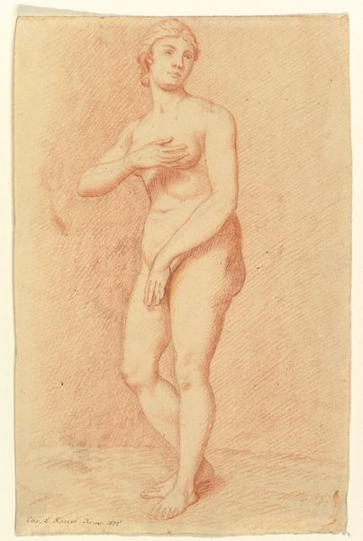 Curator: The piece before us is a pencil drawing titled "Seated Female Nude," attributed to Auguste Rodin. What are your initial thoughts? Editor: My immediate impression is one of delicacy and vulnerability. The figure appears unfinished, almost ephemeral, as if she might fade from the page at any moment. Curator: Indeed. The sketch-like quality is paramount. Notice how Rodin utilizes a network of finely drawn lines to suggest form and volume rather than define them rigidly. There is a real economy of line here. Editor: It is as if Rodin invites us to participate in the act of creation, to complete the image in our minds. This speaks to the changing status of the nude in late 19th-century art. It moves beyond mere representation to a space of encounter and perhaps even empathy, wouldn't you say? Curator: Certainly, it reflects the shifting social attitudes toward the body and the representation thereof, which were quite revolutionary at the time. How do you read the pose itself? The woman's posture. Editor: The seated position, with her limbs loosely arranged, gives her a casual demeanor but still a striking and defiant visual stance, in my opinion. There is no idealization of the nude here, unlike those painted in the Academic Style back in the time. The model possesses both strength and fragility, and in its own time, I’d bet she caused a scandal of her own. It certainly caused quite a ruckus to those in power. Curator: It caused a definite ruckus; art challenging institutions of power are always controversial. Focusing on purely visual aspects for a moment, notice the emphasis on capturing the interplay of light and shadow. He's using subtle tonal variations with his pencil to define the figure's contours. There is a kind of soft illumination to the figure in total contrast with Academic rigid figures you spoke of just a moment ago. Editor: Ultimately, this piece feels deeply personal, as if we’ve stumbled upon a private moment between artist and model and maybe something more: A dialogue about our understanding of ourselves. Curator: An astute observation. It allows us to see how formal choices enhance meaning in the drawing. The art offers a space to think about what art means for different viewers. Editor: For me, this brief interaction underscores art’s historical value—it is much more than line work but also acts as an emblem of social change and a place of contemplation for current debate.