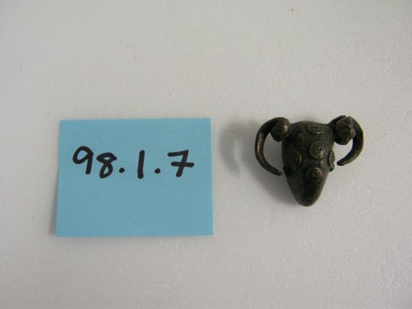 Curator: Welcome. Before us, we have an Akan goldweight from the 19th or 20th century, created from brass, depicting a crocodile and fish on a log. Editor: The piece, though small, makes quite a statement. The brass gives it a muted, almost somber quality, but the stylized rendering of the animals still feels dynamic and a little unsettling. Curator: Precisely. The geometric precision of the design is striking. Note the simplified yet recognizable forms; the log with its clearly defined edges, the crocodile with its textured body and powerful tail, the subtle detailing that captures the essence of the crocodile’s strength. Editor: That crocodile dominates the composition. I see it as representing authority and power within Akan society. Given that these goldweights were tools of trade, this imagery placed that economic activity firmly within a symbolic framework where hierarchy and control are embedded. How interesting to visualize financial exchanges so symbolically. Curator: An astute observation. Semiotically, we see the weight mediating not just economic, but also social values. The interlocked forms suggest inherent dependencies – consider how the crocodile relies on its environment. Each element contributes to the overall aesthetic. Editor: Right. The fish is an interesting addition. Its presence shifts the narrative. The crocodile, normally at the top of the food chain, is now literally tethered to the fish. Perhaps commenting on human relationships in commerce? A constant interplay between who is powerful and who is vulnerable. Curator: It’s tempting to assign firm interpretations, but I also find beauty in the abstraction. This weight isn’t simply about direct representation; it's about the arrangement of shapes and spaces and the patina that the brass acquires over time. Editor: Still, seeing such a small object with such grand symbolism pushes us to reflect on how materials become signifiers within broader historical conditions. It challenges our understanding of economic exchanges by showing us how meaning itself travels. Curator: Well, I for one, am simply struck by how beautifully proportioned all elements are and by how it sits as a discrete form. It seems self-contained and wholly resolved. Editor: Absolutely, and I hope considering it with a broader social context in mind brings the past into sharp focus. Thank you for joining me today to talk about art.