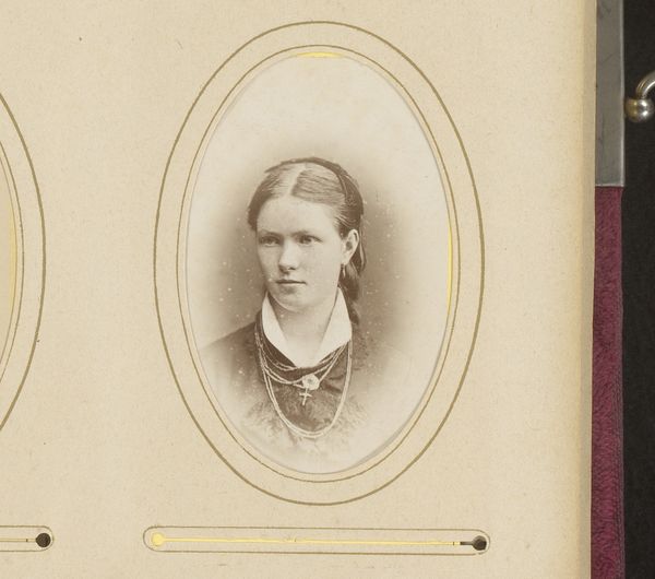 This is a photographic portrait of a young woman, made by Abraham Koorenhoff. Photographs like these were a product of their time, made possible by innovations in chemistry and optics, but also driven by a newly prosperous middle class eager to capture their likenesses. The faintly sepia tone is typical of early photographic prints. The mode of production is key here; photography transformed portraiture, once the domain of skilled painters, into something more widely accessible. While a painter might spend days or weeks on a single commission, a photographer could produce multiple images in a relatively short time. This shift democratized representation, but also altered the meaning of an image. Consider the labor involved: from the production of photographic materials to the photographer's expertise in posing and lighting. By focusing on the material and social context of this image, we can appreciate its place within broader histories of art, technology, and society.