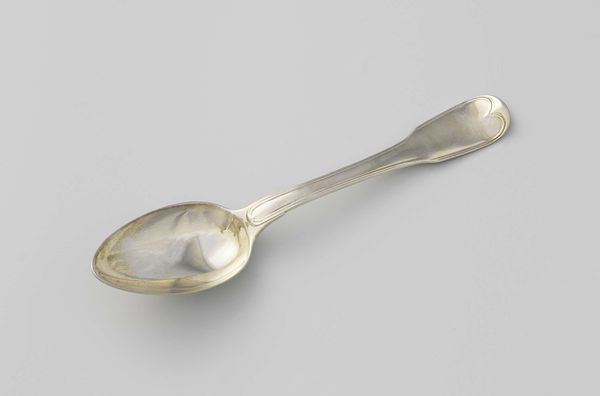 Curator: Here we have a beautiful example of early 19th-century American craftsmanship: a silver toddy ladle, made between 1800 and 1815. It’s currently residing at the Metropolitan Museum of Art. Editor: My first thought? Elegant simplicity. It looks like something you’d find in a Jane Austen novel, ready to serve up some potent cheer! The clean lines, the gentle curve of the handle... it’s lovely, isn't it? Curator: It absolutely is. Toddy, for those unfamiliar, was a mixed alcoholic drink, very popular back then. Spiced rum, hot water, sugar—a real winter warmer! This ladle would have been essential for proper dispensing, and likely used in homes that would pride themselves in domestic entertaining and leisure. Editor: The very picture of privilege. Made of silver, naturally! Do you see how the end of the handle flares out with some delicate ornamentation? Like the silversmith knew exactly how much, but also when to stop adding decoration to it. And who even got toddy? Curator: Exactly, who? While toddy might seem a quaint beverage today, it symbolized more then; it spoke of status and the transatlantic slave trade due to the importance of rum, sugar, and molasses that were used to prepare it, all resources tied to enslaved labor. Something to keep in mind during the next holiday party! Editor: Precisely. We can romanticize the past, but it’s crucial to recognize the inequalities woven into everyday objects, like this one, forged during an era of enslavement and systemic oppression, with an aesthetic appreciation intertwined with exploitation. Curator: I appreciate that, as it is essential for considering an objects' complexities as its mere beautiful surface, but its many underlayers of meaning! And the artist really showcases his mastery in crafting a simple yet visually impactful piece. Editor: And hopefully an invitation for all of us to question the stories our possessions tell! Even those beautiful shiny silver ones. Curator: Food for thought indeed, and a fascinating addition to my day. Editor: Well said, lets grab coffee... or a toddy!