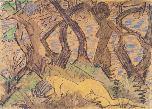 This is Franz Marc’s Landscape with a Red Animal, made with watercolor and gouache. I love the flatness of the paint application, and the way the image is built up with a series of marks that sit right there on the surface, like a collage. There's this gorgeous layering of color and form that feels so immediate and intuitive. Look at how the blue wash of the sky meets the dry brushstrokes of the black tree trunks. You can almost feel the artist's hand moving across the paper, making decisions on the fly. There's a real sense of the materiality of the medium. The way the pink clouds are applied almost feels like a memory of Cubism. It's there, but it's been flattened out and made into a pure sensation. The loose approach is typical of Marc, who often used animals and landscapes as a way to explore the expressive possibilities of color and form. It almost reminds me of Arthur Dove. Both were invested in a kind of simplified, distilled vision of the world. Art is about seeing, thinking, and feeling, right? It's a conversation that never really ends.
