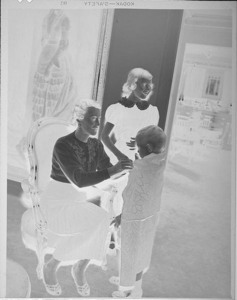 Curator: This photograph by Jack Gould captures a scene of domestic care. We see a doctor sitting with an elderly woman in her home, a rather intimate setting, don't you think? Editor: It feels like a memory, doesn't it? Faded and intimate. The stark monochrome and slightly blurry edges give it this dreamlike quality, as if you're peeking into someone's past. Curator: Considering the socio-political context, such a scene could represent accessibility, or lack thereof, to healthcare for marginalized communities. The woman's race and age intersect, creating a unique narrative. Editor: Absolutely. I wonder what they're talking about? Is it just a routine check-up or something deeper? I see tenderness in his posture, a quiet understanding. Curator: It definitely invites reflection on the power dynamics inherent in the doctor-patient relationship, particularly concerning older women. Editor: It's a simple moment, but it holds so much. It makes you think about the stories we carry and the care we give and receive. Curator: Indeed. Gould's photograph serves as a poignant reminder of the intimate moments that shape broader social narratives. Editor: It stays with you, doesn't it? A gentle echo of human connection.