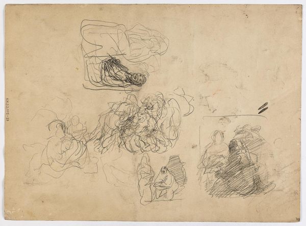 Curator: Let's discuss this etching, "Various Sketches," crafted around 1847 by Jean-François Millet. It's held here at the Art Institute of Chicago. Editor: Immediately, I notice the artist's hand so vividly present, the immediacy of the process almost more compelling than the subjects depicted. What do you make of this piece as a record of its time? Curator: As a Romanticist, Millet was engaging with an existing, evolving visual language that served specific functions. He seems particularly concerned with sketching a rural society, which aligns with the broader focus on rural life emerging then within art and literature. It speaks to social themes – representations of peasantry and reflections on labor were increasingly popular. Editor: Considering it’s an etching, it offers a relatively unmediated insight into Millet’s artistic process. The lines are scratchy and rapid, revealing not just what’s depicted, but *how* it's being depicted. We see labor, both in the representation of the figures *and* in the making of the work. The ink on paper becomes a record of physical action. Curator: True, and the roughness plays into the romanticized view of rural life prevalent at that time. However, it's also interesting how this kind of intimate sketch, despite the apparent immediacy, enters a very specific art-historical marketplace, viewed within a context of collecting and exhibiting prints and drawings, reinforcing existing class and cultural hierarchies, if inadvertently. Editor: Absolutely, it exists both as a spontaneous work of artistic creation and as a commodified object within a specific economic system. The very existence of this etching in a museum today continues that trajectory. Curator: And that complex positioning speaks volumes about the relationship between art, society, and history. Thanks for exploring that with me. Editor: Indeed, understanding this layering enriches our understanding not just of the work, but the systems it participated in, intentionally or otherwise. A fascinating intersection!
