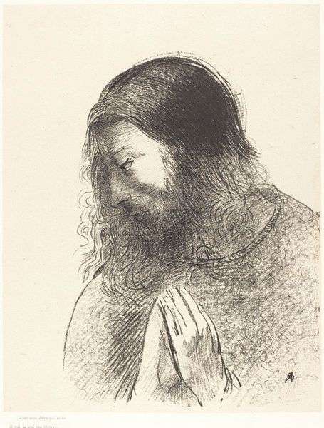 Curator: Standing before us is "Head of Christ," an oil painting attributed to Rembrandt van Rijn. Editor: The first thing that strikes me is the profound sense of quietude, almost resignation, emanating from the figure. It feels so incredibly intimate and solemn. Curator: Rembrandt's use of chiaroscuro, that dramatic contrast of light and shadow, is powerfully effective here. It draws the viewer's eye to the softly illuminated face, set against the darkened background. In many ways the shadows become their own character in the composition, drawing us to the contemplative moment. Editor: Right, and the soft, almost melancholic gaze seems to carry a weight of worldly sorrow. Knowing the historical context, that Rembrandt painted numerous biblical scenes during a time of social and religious upheaval, adds a layer of political significance. The painting evokes the suffering and compassion of the figure. Curator: I'm struck by the subtle realism achieved, not through perfect rendering, but rather, the emotive charge created via light, shadow and implied detail. What is revealed isn't an ideal of divine perfection, but a vision of imperfect humanity; of vulnerability and sorrow. This is in alignment with what cultural memory suggests to us. Editor: I agree. It challenges conventional, often idealized, portrayals of religious figures and humanizes the narrative in a society where hierarchical structures dominated religious and artistic representation. It really does democratize the icon through intimacy. Curator: His vision resonates with that of the old masters who sought to express truth through feeling. These paintings weren’t made merely to please aesthetically but to guide viewers along the emotional contours of human existence. Editor: Yes, art becomes a tool for social commentary, pushing for a more nuanced understanding of power and justice. And, it creates space for a deeper connection with this image. Curator: A space in which we consider, remember and reconnect with symbols from the past. Editor: Which we can perhaps use to create new meanings for the future.