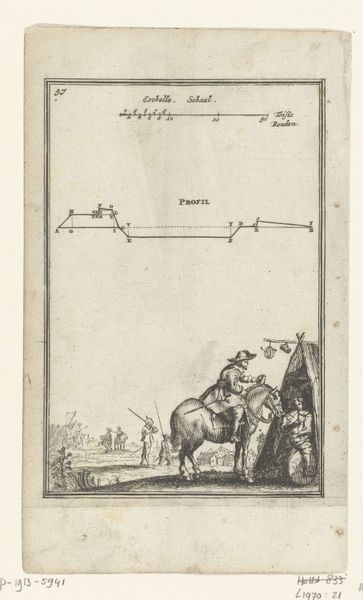 Romeyn de Hooghe made this illustration for Allain Manesson Mallet’s book, ‘The Work of Mars,’ using the technique of etching. This printmaking process involves coating a metal plate with a waxy, acid-resistant substance, drawing through the coating to expose the metal, and then immersing the plate in acid, which bites into the exposed lines. The choice of etching is significant. Its relatively easy reproduction meant that detailed military strategies, like the design of this fortress, could be widely disseminated. Note the precision of the lines; the intricate geometry of the fortress and the postures of the figures on horseback. The material process of etching, with its capacity for detailed replication, mirrors the systematic approach to warfare and fortification that the book promotes. Ultimately, appreciating this print means acknowledging the close relationship between artistic technique, military strategy, and the broader social and political context of the 17th century. De Hooghe was not just an artist, but an agent in the distribution of power.