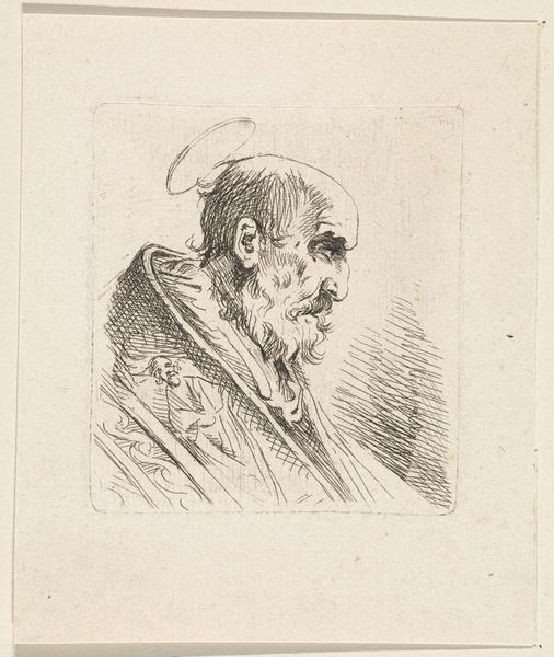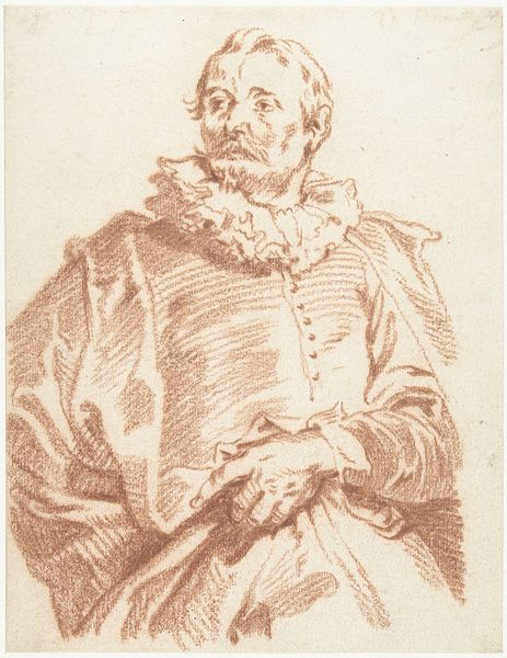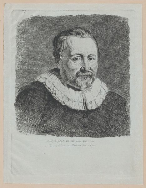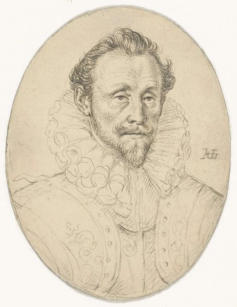 This is an ink drawing on paper depicting Antonio Tempesta, though the artist remains anonymous. The drawing emphasizes line and form, creating a dynamic and immediate visual experience. Notice how the artist uses quick, repetitive strokes to define the contours of Tempesta’s face and clothing. The marks vary in thickness, suggesting a modulation of light and shadow that gives volume to the figure, particularly around the eyes and beard. The composition is structured by these linear elements, which not only outline the figure but also fill in details such as the ruffled collar and the soft texture of the hair. Considering a semiotic interpretation, the drawing performs representation and symbolism, as the formal qualities of line and composition work to convey information about the subject’s status and character through a series of signs. This drawing encapsulates a moment in cultural history, inviting continuous readings.