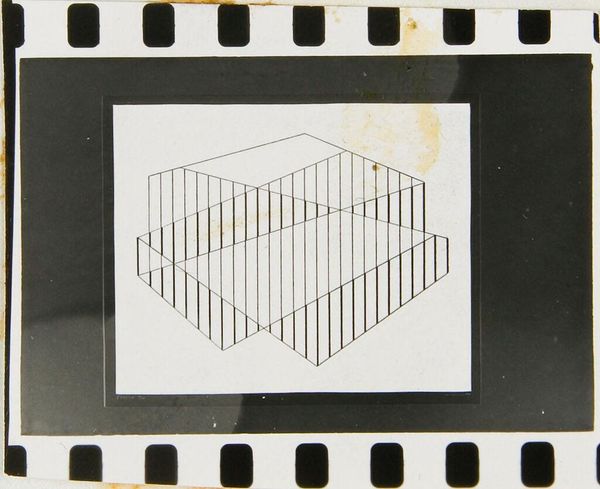Curator: This is one print from a set of twenty-eight slides by Josef Albers, dating from his prolific career but without a specific date. Editor: Immediately, I'm struck by the interplay between the mechanical frame of the slide and the geometric precision within. It feels very much of its time. Curator: Albers’ approach to geometric abstraction is so iconic. These interlocking forms evoke a sense of architectural space, inviting us to consider spatial relationships and perhaps hidden meanings of the objects. Editor: I'm curious about the materials. This looks like a photographic reproduction, perhaps a screen print, which raises questions about its reproducibility and distribution as part of a larger set. Curator: Perhaps these forms reflect our understanding of progress and industrialization, and how those symbols were used at that time. Editor: It’s fascinating how the method of production shapes our interpretation of these very formal, yet also very accessible images.