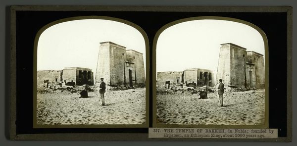 This stereograph of the Temple of Derr in Nubia was made by Francis Frith, a British photographer, sometime in the mid-19th century. Frith’s practice was deeply entwined with British colonialism. He traveled extensively in the Middle East, documenting ancient sites and contemporary life, and his images were then mass-produced and sold to a Western audience eager to consume exotic views of distant lands. Photography at this time involved laborious processes, from preparing the glass plate negatives to printing the final images. Frith employed local labor to assist with the logistics of his expeditions, further embedding his work in the complex social dynamics of the region. The stereograph format itself is significant. By presenting two slightly different images side-by-side, it creates a three-dimensional effect when viewed through a special device. This heightened sense of realism catered to the Victorian fascination with scientific accuracy and immersive experiences. Ultimately, Frith’s photographs, like this one, offer a window into both the ancient world and the 19th-century world of imperial ambition and technological innovation.