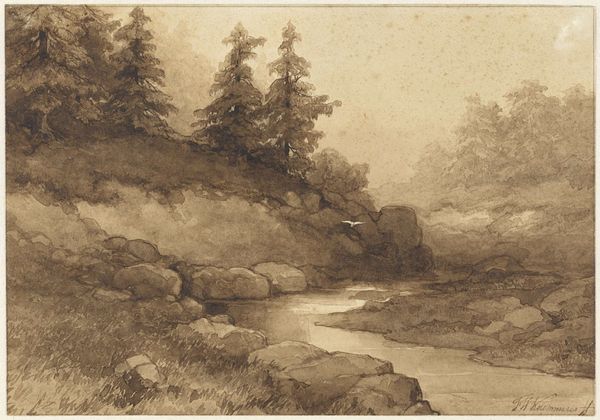 Daniel Huntington created this drawing of a waterfall, Swiftwater, in pencil, charcoal and white chalk, likely in the late 19th century. Huntington's romantic naturalism connects to the American cultural movement of the time, which emphasized the unique beauty of the North American landscape as a means of defining a new national identity. Notice how the image creates a sense of sublime beauty through its attention to the wildness of nature. Waterfalls were a popular subject in the United States at this time as they symbolized the nation's vast resources and potential for progress. Artists like Huntington, who often exhibited at institutions such as the National Academy of Design, played a role in shaping national identity. Understanding this drawing requires considering the historical context. By looking at exhibition records, period writings on aesthetics, and biographies of the artist, we can better understand the cultural work this image performed in its own time. The meaning of art is contingent on its social and institutional context.
