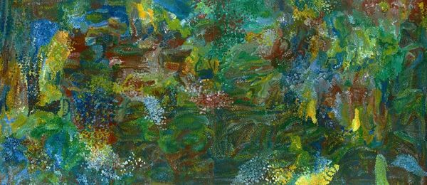 Curator: Immediately, I sense an aquatic dreamscape, like floating among bioluminescent plankton. Editor: Indeed. Let’s explore Hideo Hagiwara's "Play Ground (2)," at the Harvard Art Museums. It's a modest-sized print, about 45 by 59 centimeters. Curator: The orbs certainly dominate. They feel symbolic, almost like eyes or celestial bodies, set against that rich, mottled green. Editor: The lines create a semiotic field, evoking meandering paths or perhaps even a musical score. The artist's choice of texture adds to the complexity. Curator: The title, "Play Ground," suggests a deeper layer of meaning. Perhaps this is a visual metaphor for the freedom and exploration of childhood imagination. Editor: Perhaps so, but the interplay of line, texture, and color establishes a visual syntax inviting close formal reading. Curator: Ultimately, this work reminds us that art offers more than meets the eye. It's a journey into the realm of shared symbols and personal interpretation. Editor: A journey made all the richer by its self-contained, abstract formal language.