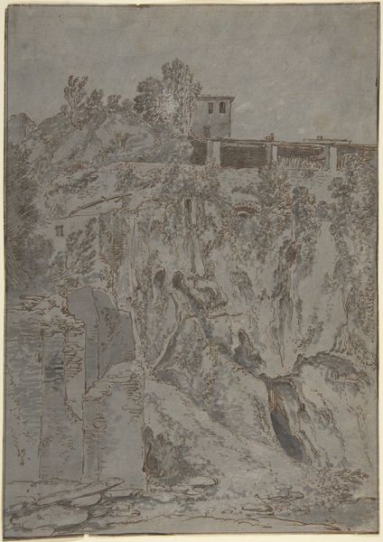 Albert Emil Kirchner sketched Heidelberg Castle using pen and brown ink with white heightening, capturing the ruin's melancholic grandeur. The composition, dominated by the castle's decaying facade, evokes a sense of historical weight. Notice how Kirchner uses line and contrast to define form. The detailed ink work against the blank paper creates depth, making the ruin feel imposing yet fragile. Kirchner's skill is evident in how he balances architectural precision with romantic ruin. The castle, framed by wild vegetation, presents a stark visual contrast. This interplay of nature and architecture destabilizes the conventional understanding of built environments. The castle isn't merely a structure but also a site where nature reclaims human creation. This image encourages a discourse on time, decay, and the transient nature of human endeavors. The ruin's silent monumentality invites us to consider how meaning is constructed through absence and presence.