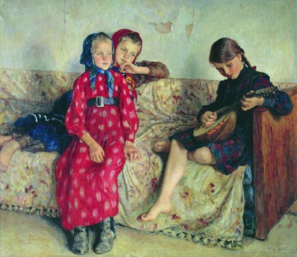 Dobri Dobrev painted "Kalinka and Stanka", but we don’t know exactly when. The brushwork is direct, confident. Dobrev wasn't afraid to let the paint do its thing, and you can see how each stroke builds up the forms of the figures. I'm drawn to the way the light catches the folds of Kalinka's headscarf. It's a little messy, not too precious, but that's what makes it so real. The red and orange tones seem to vibrate against the darker colours of her dress, creating a subtle tension in the composition. You can see similar colours reappearing in the flower pot to the right. It reminds me of someone like Paula Modersohn-Becker, who also painted unsentimental portraits of rural women. Both artists embraced the beauty of everyday life, finding poetry in the ordinary. And isn't that what art is all about?