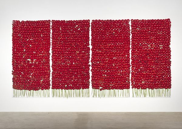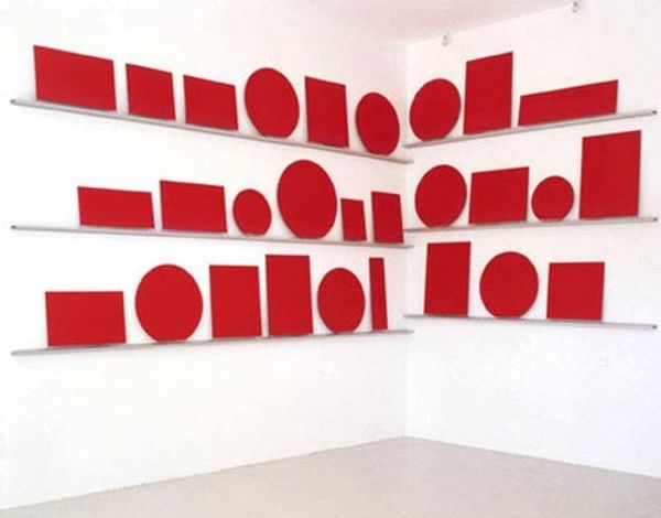 Mel Bochner made Theory of Boundaries using paint directly onto the wall. It's so cool to see how he's marked out these red geometric shapes, playing with the architecture of the space. It feels like he's inviting us to rethink how we see the room itself. I’m fascinated by the textures in this piece; you can see the materiality of the paint. Notice how the edges of some of the red blocks are rough and crumbly, almost like the paint is struggling to stay within the lines. Look closely and you can see the individual strokes and dabs that build up the color. Each mark seems deliberate, yet there’s a freedom in the way he’s applied the paint, allowing it to have a sculptural presence, rather than just being a flat surface. The whole work feels really honest and process-oriented. Bochner’s work reminds me a little bit of Sol LeWitt, in the sense that both artists are interested in systems and ideas, and the space around the thing. There's no right or wrong way to look at it. It’s all about the dialogue between the artist, the work, and you!