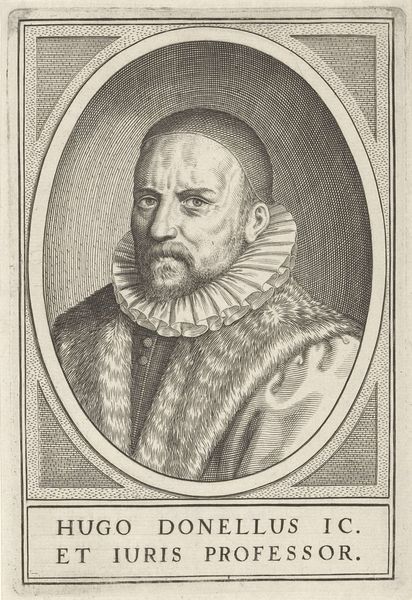 Harmen de Mayer created this portrait of David Jacobsz. de Wildt using etching techniques. The somber tones and linear precision, achieved through fine, closely-spaced lines, give the portrait a striking sense of formality. The composition is carefully structured, focusing on the sitter's face, framed by the dark hat and contrasting ruff. The use of light and shadow models the subject’s features, providing a sense of depth and volume, while the detailed rendering of his attire conveys texture and status. This emphasis on visual elements invites us to reflect on how portraits of this era construct identity through form and semiotic codes. The varying textures in clothing and skin, achieved through the etching, highlight the materiality of the artwork itself. Ultimately, it is through de Mayer's meticulous technique that the portrait transcends mere likeness. It becomes a study in representation, prompting a deeper understanding of the formal qualities that contribute to meaning.