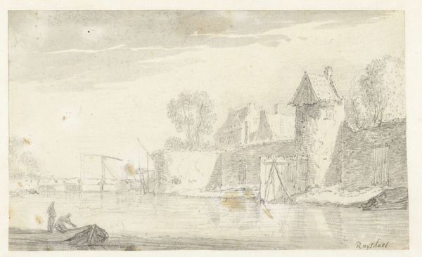 Editor: This small etching, "An Open Scene, an Estuary," is from the British School, though the artist is unknown. I’m really drawn to the way the artist captured this scene using such delicate lines. What symbols or cultural connections do you find in this piece? Curator: The estuary, a place of transition between fresh and salt water, carries potent symbolism. It's a threshold. Note also the ruined structure. What memories or histories might it evoke for the viewer? Editor: A sense of time and change, maybe? Curator: Precisely. The boats, too, speak of journeys, both literal and metaphorical, connecting us to themes of exploration, trade, and the human relationship with the natural world. What personal connections might viewers bring to these symbols? Editor: It’s fascinating to consider how these simple images can hold so much collective meaning. Curator: Indeed. And how individual experiences shape our understanding of shared visual language.