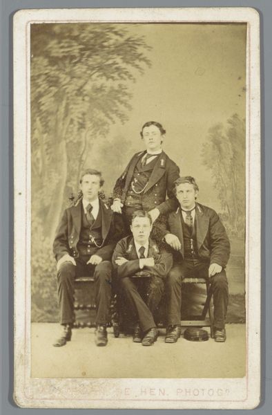 This group portrait was created by Stalins & Janssens, who were photographed using photographic techniques. Photography emerged as a new medium in the 19th century. This image has a sepia tone that results from the chemical development processes used to create it. Unlike painting or sculpture, photography is mechanical, reproducible, and tied to industrial production. Note the individuals depicted: Alphonse Janssens, a glass painter; Robson, a composer and organist; Van den Branden; and Josephus Nauwens, an engraver. All are skilled artisans who, like the photographers themselves, navigate the evolving landscape of labor and creativity. The photograph not only captures their likenesses but also the moment in time when traditional craftsmanship intersected with new technologies. This challenges conventional hierarchies between art and craft, highlighting the shared pursuit of skill and expression across different media. It prompts us to reflect on the changing nature of work and the enduring value of human creativity in an age of rapid technological advancement.