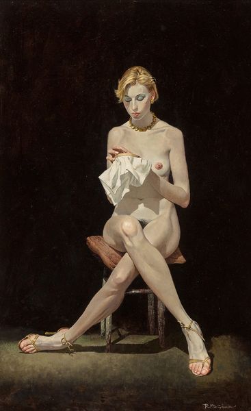 Gil Elvgren, an American artist, created this painting, "Vision of Beauty," using oil paint. It exemplifies mid-20th-century pin-up art, a genre deeply embedded in the social fabric of its time. Elvgren's image presents a carefully constructed vision of idealized femininity. The subtle color palette, the soft lighting, and the model's demure gaze all contribute to an image that is both alluring and accessible. Made during a time of conservative values and advertising expansion, these images reflected and reinforced a very specific, male-dominated, ideal of beauty. We can examine period magazines, advertisements, and even sociological studies to better understand the cultural context in which this art flourished. The historian's role is to unpack these layers, revealing the complex interplay between art, commerce, and social norms. What was the impact of this industry on women? What are its effects on the art world? What continues to be the legacy of the pin-up?