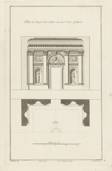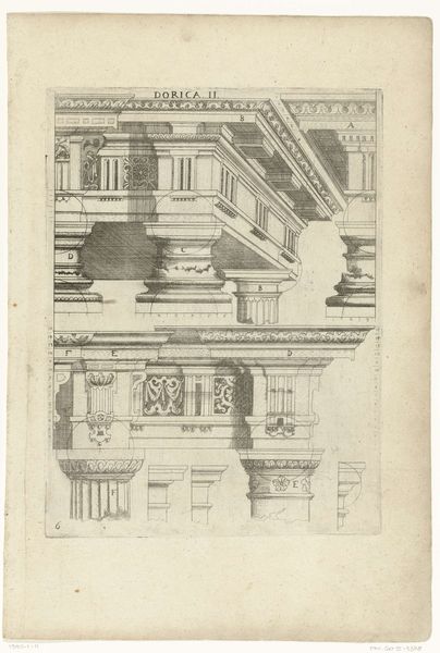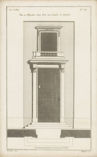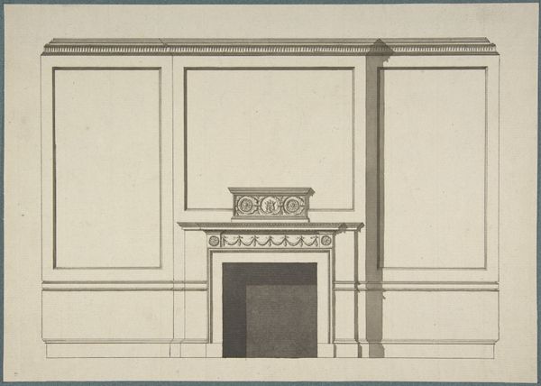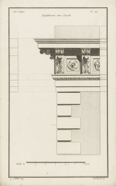 This is 'Hoofdgestel met consoles', a drawing by Jean Pelletier. Pelletier was born in France in 1736, a time of significant social stratification and rigid class structures. His work as a draftsman reflects the values of the Enlightenment era, and also the vast social inequalities of pre-revolution France. Architectural drawings like this were crucial for the construction of buildings that often served as symbols of power and authority for the aristocracy. Here, Pelletier meticulously depicts classical architectural details. The clean lines and precise measurements are characteristic of the period's emphasis on reason and order, yet the drawing itself would have served the creation of spaces accessible only to a privileged few. Consider how the pursuit of aesthetic perfection often existed alongside stark social divides, with art and architecture frequently reinforcing existing power structures. This drawing, with its emphasis on proportion and detail, invites us to reflect on the complex relationship between art, society, and the built environment.