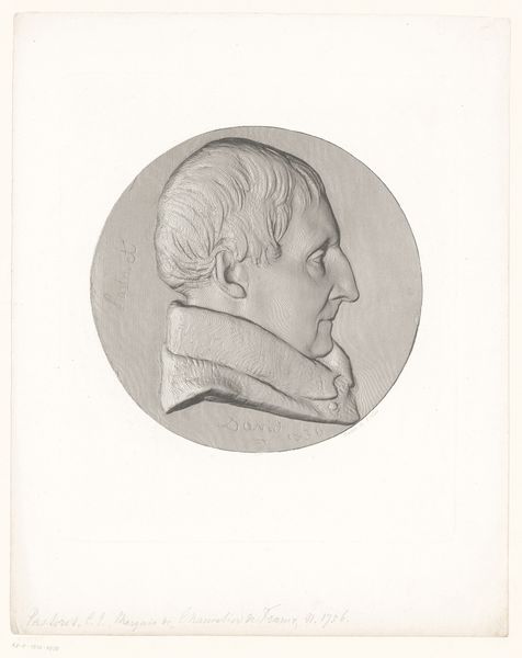Achille Collas created this portrait of Bertrand Barère using the technique of ‘physionotypie’. The first thing that strikes you is the stark simplicity and the monochrome palette, which invites a close look at the structure. Collas has used a combination of line and shading to model the face and hair. The profile, set within a precisely rendered medallion, echoes classical forms. This almost sculptural quality lends the piece a sense of permanence. But what does it mean to capture a likeness using such a mechanical process? Physionotypie attempted to produce accurate portraits through mechanical means. By employing this technique, Collas engages with debates about art, science and the Enlightenment’s quest for objective representation. Consider the precision of the lines—how they delineate each feature with almost scientific detachment. This precision is not just about capturing a likeness; it reflects a broader cultural desire to categorize and understand the world through empirical observation. The portrait becomes not just an image of an individual, but an emblem of an era grappling with new ways of seeing and knowing.