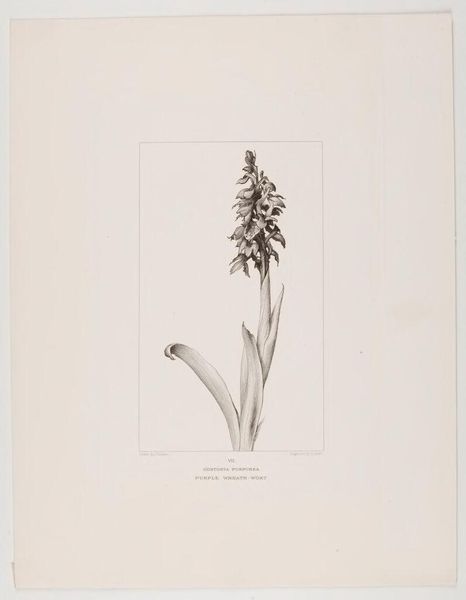 Curator: Here we have G. Allen's "Branch of Phillyrea" from the collections of the Harvard Art Museums. Editor: It strikes me as quite somber, stark almost, yet beautifully rendered. The texture of the paper itself seems palpable. Curator: Indeed. Allen has captured the plant's essence, focusing intently on the interplay of light and shadow to define form. Consider the elegant structure of the leaves. Editor: I’m curious about the printing process used. Look at the subtle variations in tone; this might involve lithography or even hand-coloring, techniques that demand skilled labor and resource management. Curator: Certainly, the formal elements converge to create a harmonious whole; it is the ideal of capturing botanical form. Editor: And let’s remember that the production of such prints often tied into larger networks of scientific study and colonial botanical exploration. Curator: An interesting perspective to consider. Editor: Absolutely, it certainly adds another layer to this image.