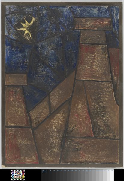 Editor: We're looking at "Don Quixote and Sancho Panza," a woodcut print by Louis Schanker. The abstract shapes almost dance between the cool blues and warm reds. What's your interpretation of this, given the iconic subject matter? Curator: Ah, yes, Schanker's Quixote! To me, it whispers of tilting at windmills, not literally recreating the scene but capturing its restless energy. See how the angular forms seem almost caught in mid-motion, clashing and yet connected by those delicate lines. Do you feel that tension between the figures? Editor: I do! It's like a contained explosion of feeling. Is this common for expressionist woodcuts? Curator: Absolutely. Expressionists often favored woodcut for its raw, gestural possibilities. The bold cuts echo the inner turmoil that artists sought to express, distilling the essence of a story. Schanker, though abstracting, gives us the soul of Cervantes' tale, the idealistic yet flawed quest, the eternal interplay between dreaming and reality. The blue and red almost seem like opposing forces, wouldn't you say? Editor: Definitely. It is like the cold calculation versus the fervent passion in Quixote's own mind. The simplification really does hit hard, like it is a universally-understood icon, rather than a snapshot. Curator: Precisely! Abstraction lets us tap into those universal emotions, stripping away the literal. Editor: I’m starting to see it less as a depiction, more of a… distilled feeling of Quixote. It almost makes the story new again, accessible. Curator: And isn’t that what great art should do? Reframe, remind, and reignite. Thanks for noticing with me! Editor: My pleasure! I will never look at a windmill the same way again.