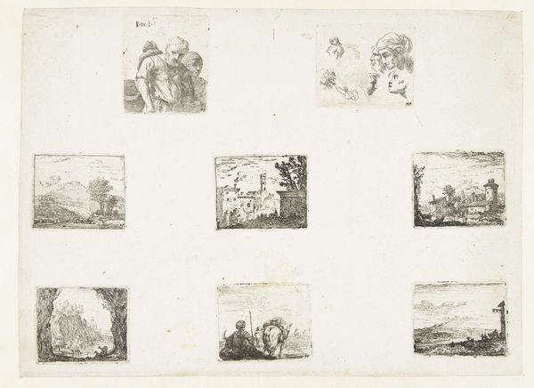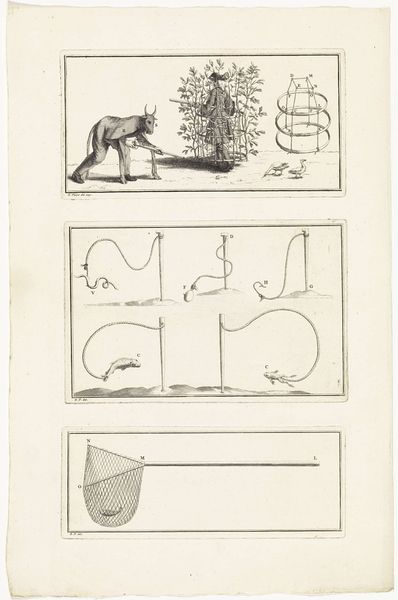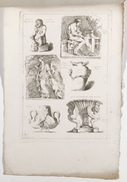 Daniel Nikolaus Chodowiecki, a prominent figure of the Enlightenment era, created this print titled 'Examples of masculine nouns in Latin' using etching techniques. The artwork functions as a visual aid for learning Latin, categorizing nouns through a series of images. Born in Danzig, now Gdańsk, Chodowiecki straddled Polish, German, and French cultural spheres, reflecting the complex identities of the time. His art often mirrored the Enlightenment's focus on education and reason, but also engaged with the social realities around him. This piece, intended for educational purposes, intersects with gender norms by associating certain nouns with masculinity. Think about the implications of gendering language and knowledge. Each image opens up a discussion about societal roles and expectations attributed to men. The act of learning itself was often gendered, influencing who had access to education and knowledge. This print provides a glimpse into the ways in which language and learning were structured by gender during the Enlightenment, subtly shaping our understanding of the world.
